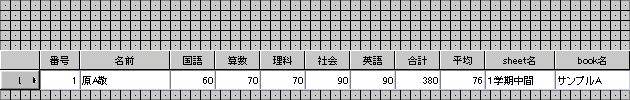 | イベントの補足。 イベントでは汎用性を持たせる為に、また、後ほど他のファイルやシートも選択できるようにするため、名前を固定できません。その為 ・一括処理で、 >エクセル "サンプルA.xls","1学期中間",項目名行 = する,表名 = "エクセル$$$$.tbl",上書き = する このように、説明しましたが、イベントでは逆に変数を利用して、 >&book名="サンプルA.xls" >&sheet名="1学期中間" >エクセル &book名,&sheet名,項目名行=する,表名="エクセル$$$$.tbl",上書き=する,終了状態=&終了 再度、変数に戻しています。ご注意下さい。 |