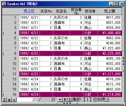図−2 集計行に、背景色・文字色設定例
