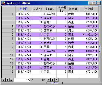 図−3 偶数行に背景色設定例